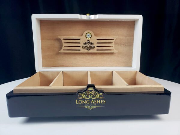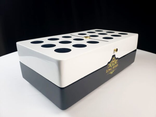 The DOMINO humidor is available for both double 6 and double 9. With capacity for more than 80 cigars, depending on the vitolas. This high quality humidor is 18 inches wide and 10 inches Depth, special as a decorative element or game room. Includes 100% Spanish cedar interior and the possibility to personalize your logo or central name, for a special gift for family and friends.